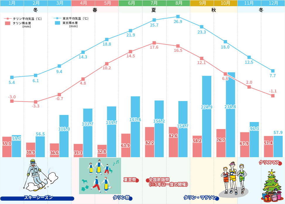 日本からエストニアへの直行便はありません。ヨーロッパ系航空会社は乗り継ぎが一度で済み、特にフィンランド航空のヘルシンキ経由は最短で便利。