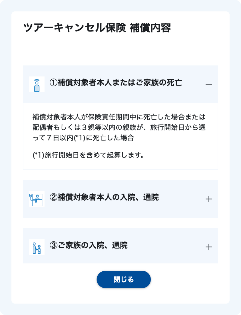 なお補償対象者には旅行代金設定がない方(乳幼児の方など)は含みません。