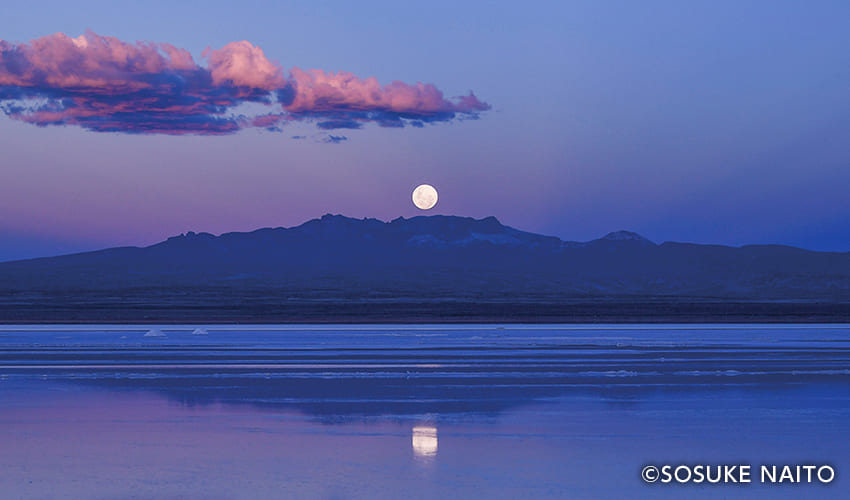 満月に照らされるウユニ塩湖