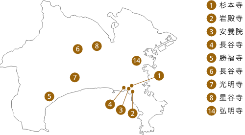 巡礼の旅立ちは第1番・杉本寺から。ツツジ咲く第3番・安養院(田代寺)、アジサイや紅葉が美しい第4番・長谷寺など四季に彩る鎌倉が楽しめます。