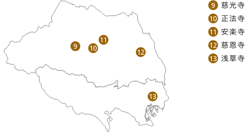 1300年の歴史を持ち、源頼朝戦勝祈願の寺である第9番・慈光寺、樹齢700年の大銀杏のある第10番・正法寺など、歴史を感じる寺の数々。