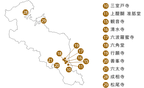唐招提寺、三十三間堂と共に三観音の一つ第5番・葛井寺、勝運振興の第23番・勝尾寺など個性豊かな寺々。