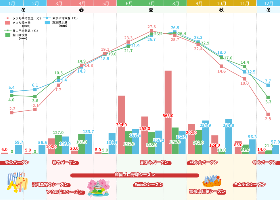 ソウル・釜山は国土交通省 気象庁ウェブサイト調べ(2023年)